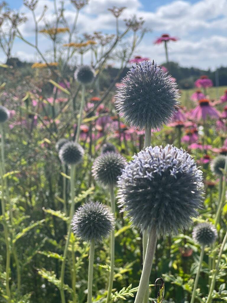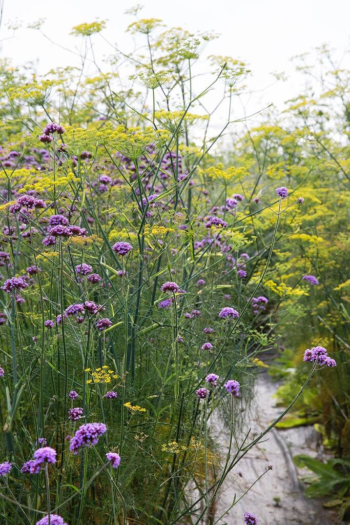 Klinte, Aftenpragtstjerne, Anis isop, Fennikel, Stolt kavaler, kæmpe verbena, Blæresmælde, Hulsvøb, Kugletidsel, Blomsterkørvel, Purpursolhat, Valmue mix .